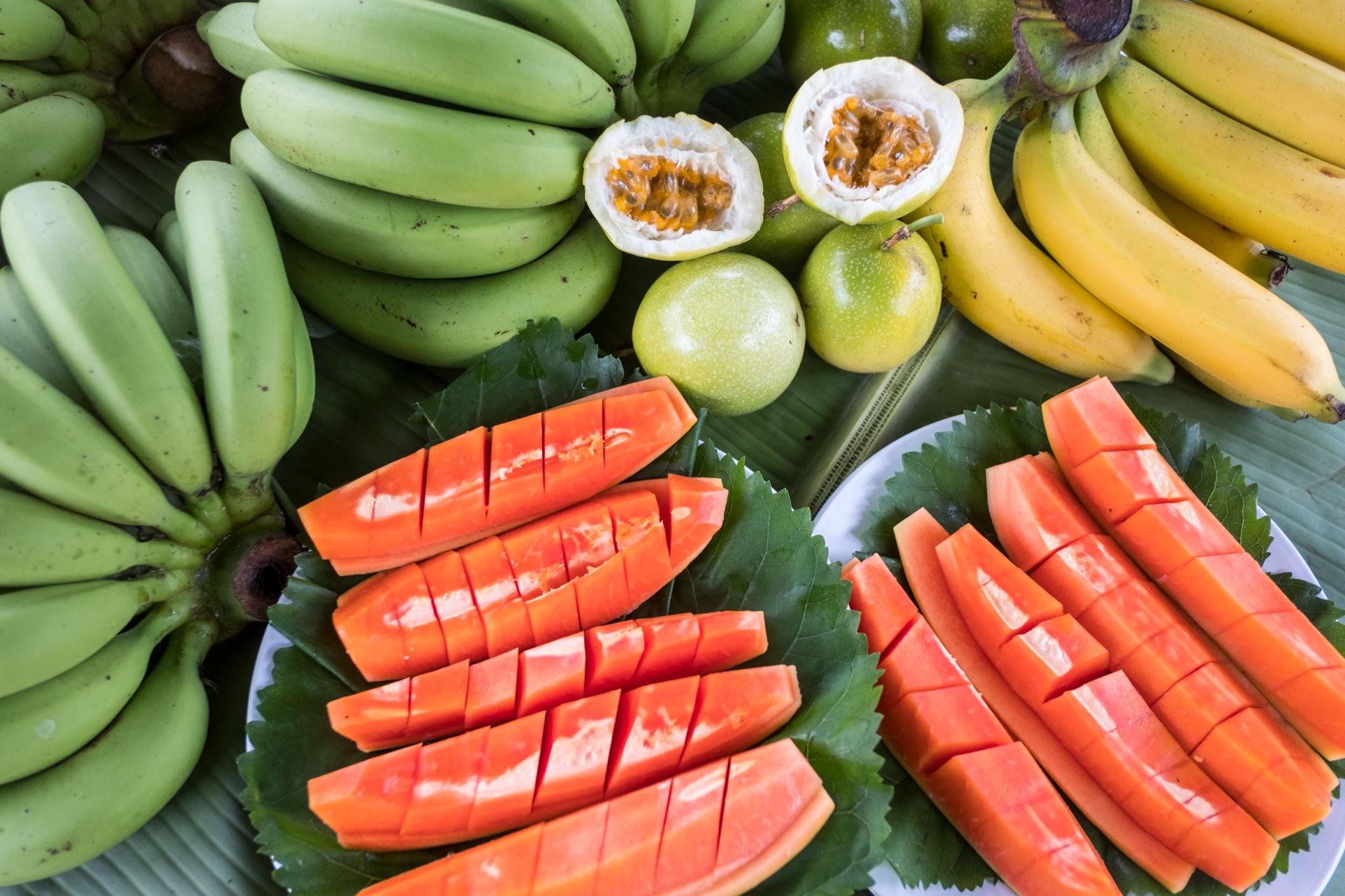 They grow all kinds of vegetables. Some of what you would find are salad greens, string beans, small eggplants, morning glory, kale, Chinese cabbage, and corn. There is no shortage of fruits either, including limes, bananas, papayas, durian and mulberry. The produce is delivered to the Koh Mak Resort and Seavana Beach Resort to be cooked up for customers.
